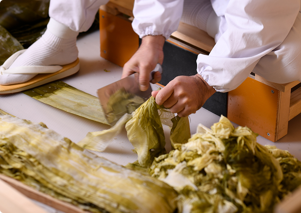 江户时代,作为“北前船”停靠港的敦贺是一座港口城市,来自北海道的最优质海带汇聚于此,海带的加工技术也得到发展。在此过程中,历经锤炼的便是将海带削至极薄的“手工削制胧海带”技术。